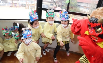 園児が「豆まき」で鬼を退治 伝統行事の豆まきを通して、節分の由来や意味を学ぶ