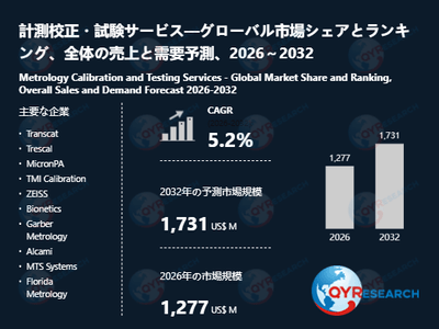 世界の計測校正・試験サービス市場:2032年に5.2%成長率、市場規模は1731百万米ドルに達する見込み