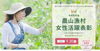 農林水産業における女性活躍推進に貢献する活動を表彰 「令和6年度農山漁村女性活躍表彰」エントリー受付開始