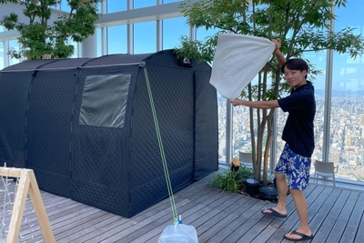 学生がキャンパス内でサウナイベントの実証実験 燃料には近大が研究開発した固形燃料"バイオコークス"を使用