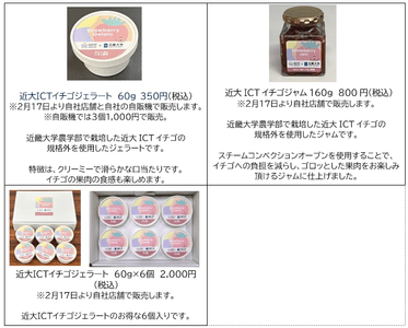 「なら近大農法」を用いて農学部生が育てたイチゴの規格外品を活用した 近大ICTイチゴジャムとジェラートの試食会のご案内