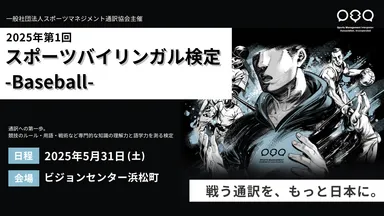「2025年第1回スポーツバイリンガル検定-Baseball-」 東京都港区ビジョンセンター浜松町にて5月31日(土)開催!