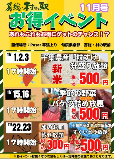 「11月もSAでも盛り放題に詰め放題!? 野菜に卵に新豆!新米!!京葉道路幕張SA 房総・村の駅 【新物はおいしいんです!秋のお買い得イベント】」開催