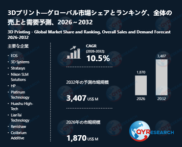 世界3Dプリント市場、2032年に3407百万米ドル規模へと成長予測