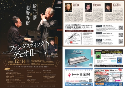 崎元讓と美野春樹によるデュオコンサート開催決定! ハーモニカとピアノによる新たな音の響きを堪能 ゲストにアコーディオンの桑山哲也登場