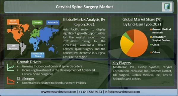 頸椎手術市場ー手術の種類別(頸椎固定術、前頸部椎体切除術と固定術など)およびエンドユーザー別(総合医療病院、外来手術センター、クリニック、その他)-世界の需要分析と機会の見通し2021-2029年