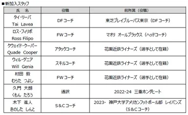 2025-26シーズン新加入スタッフおよび 新体制のお知らせ