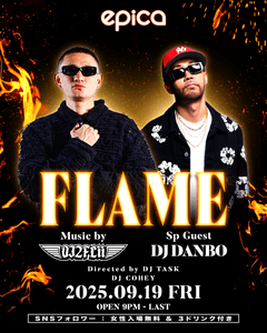 一夜限りの熱狂!! 2025年9月19日(金)「EPICA•沖縄」にて、DJ 2FLiiプロデュース【FLAME】Vol.4にDJ DANBOを迎え開催決定!