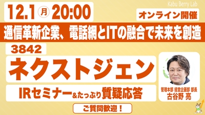 12月4日開催!「名証IRセミナー オンライン個人投資家向け企業説明会」 登壇のお知らせ