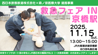 【JR西日本×医療大学】 駅前で学ぶ“いざ”の時の救急救命!参加無料の「救急フェアIN京橋駅」を開催!(森ノ宮医療大学)