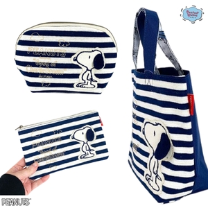 お出かけしたくなるバッグ♪スヌーピーのボーダー柄トートバッグ&ポーチが新登場