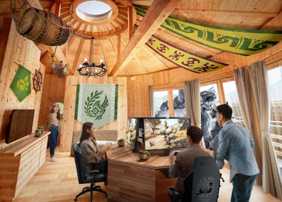 ニジゲンノモリ公式ラグジュアリーヴィラ「GRAND CHARIOT 北斗七星135°」 ハンティングアクションゲーム「モンスターハンター」でゲーム合宿 2つのコラボルーム『集会所のコクーン』『マイハウスのコクーン』 2025年6月20日(金)オープン