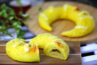 ヒット商品「青い富士山カレーパン」に続け!甲府特産コーン“きみひめ”を使った、繊細な味わいのカレーがギュッと詰まった「黄金(こがね)三日月カレーパン」が新登場