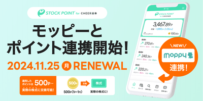 StockPoint for CHEER証券、リニューアルでポイント連携開始!モッピーの1,200万人超ユーザーに新たなポイント活用を提供