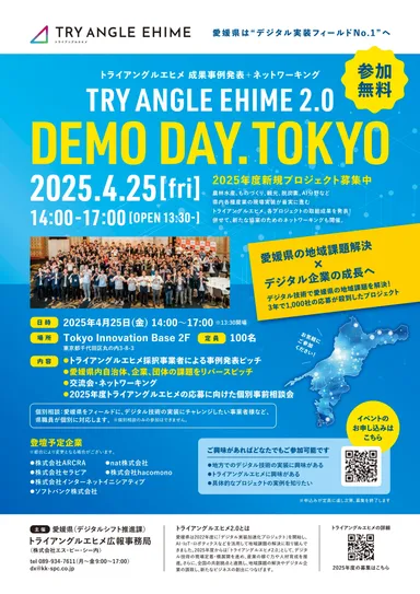 トライアングルエヒメ2.0 プロジェクト事例発表会&ネットワーキング 「デモデイ2025@TOKYO」4月25日にTIBで初開催!