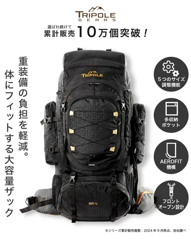 重装備でもラクに歩ける!長時間登山の負担を軽減する 新「Tripole 60L ザック」をAmazonで発売