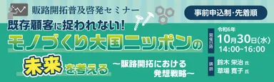 (公財)東京都中小企業振興公社が主催する 「令和6年度販路開拓普及啓発セミナー」 (中小企業ニューマーケット開拓支援事業) 令和6年10月30日(水)開催決定!