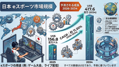 日本のeスポーツ市場規模、2034年までに4億1760万米ドルを突破へ | 年平均成長率(CAGR)は11.20%