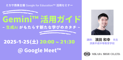 ミカサ商事、教職員向けセミナー「Gemini 活用ガイド 〜 生成AIがもたらす新たな学びのカタチ 〜」を1/25(土)開催